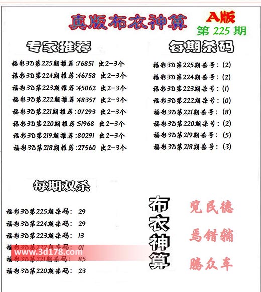 3d之家布衣图库之布衣神算图第2021225期详解: