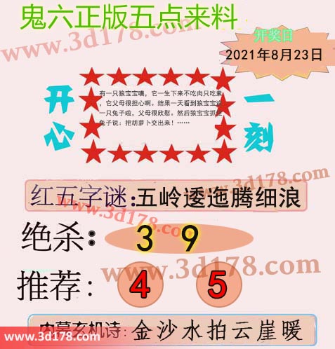 福彩3d第2021225期鬼六五点来料: