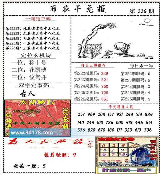 福彩3d第2021226期布衣千元报图详情分析如下: