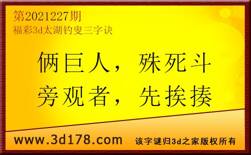 3d第21227期太湖字谜:俩巨人,殊死斗,旁观者,先挨揍