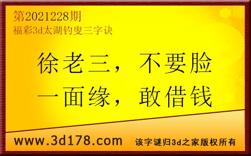 3d第21228期太湖字谜:徐老三,不要脸,一面缘,敢借钱