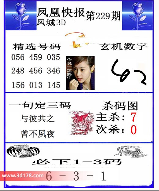 福彩3d凤凰快报图第21229期精选号码推荐: