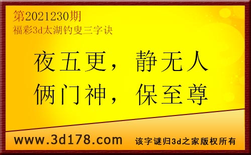3d第2021230期太湖字谜:夜五更,静无人,俩门神,保至尊
