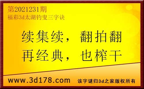 3d第2021231期太湖字谜:续集续,翻拍翻,再经典,也榨干
