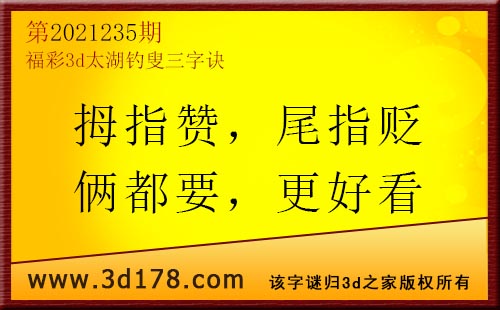 3d第21235期太湖字谜:拇指赞,尾指贬,俩都要,更好看