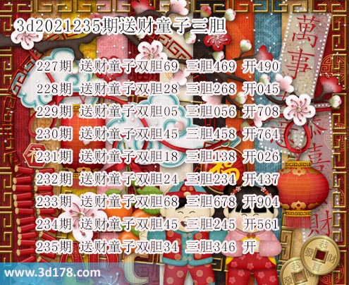 胆码图库3d第2021235期送财童子图: