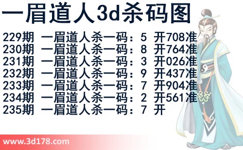 该一眉道人3d杀码图由3d之家3d图库频道原创,仅供彩民参考,温馨提供。