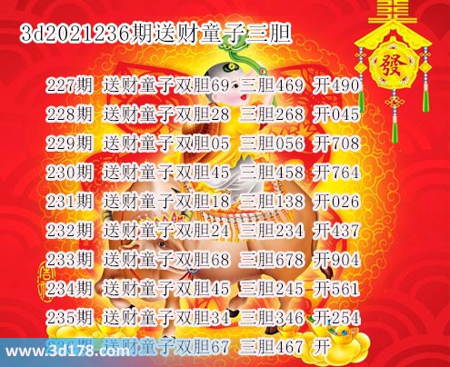 下面我们一起来回顾一下3d之家胆码图送财童子三胆近期推荐详情:
