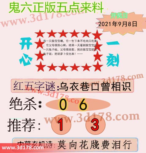 福彩3d第2021241期鬼六五点来料: