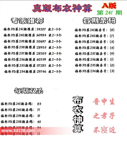 3d之家布衣图库之布衣神算图第2021241期详解: