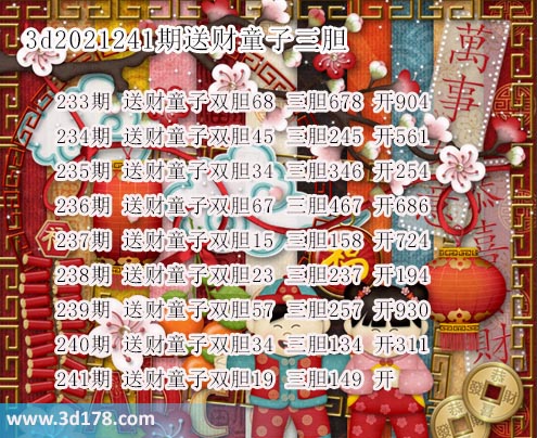 下面我们一起来回顾一下3d之家胆码图送财童子三胆近期推荐详情: