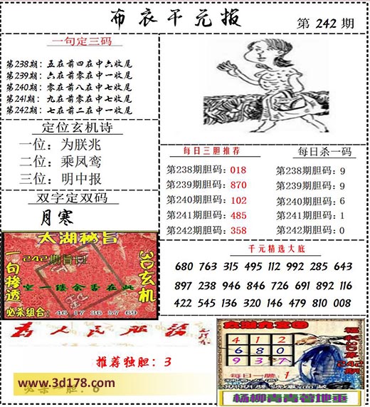 福彩3d第2021242期布衣千元报图详情分析如下: