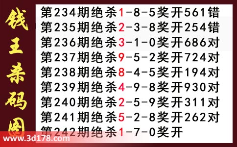 近期3d钱王杀码具体详情