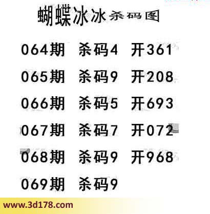 068期 蝴蝶冰冰杀一码:9 开968 准