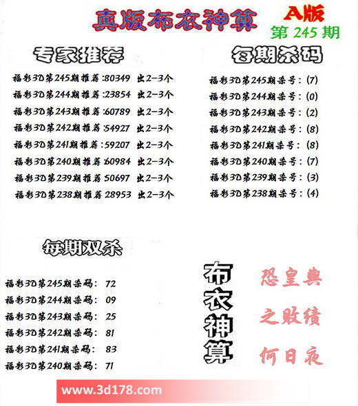 3d之家布衣图库之布衣神算图第2021245期详解: