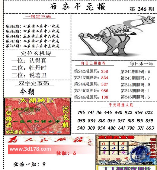 福彩3d布衣图库布衣千元报第2021246期定位玄机诗: