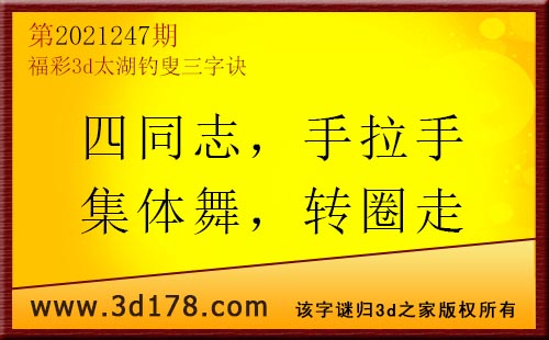 3d第21247期太湖字谜:四同志,手拉手,集体舞,转圈走