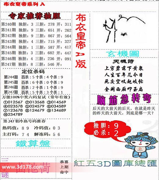 福彩3d第2021247期布衣皇帝A版布衣专家独家推荐: