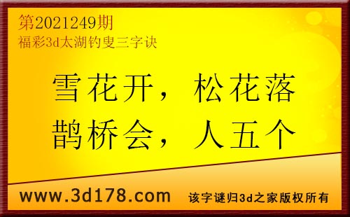 3d第21249期太湖字谜:雪花开,松花落,鹊桥会,人五个