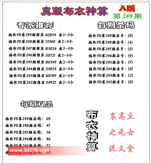 3d之家布衣图库之布衣神算图第2021249期详解: