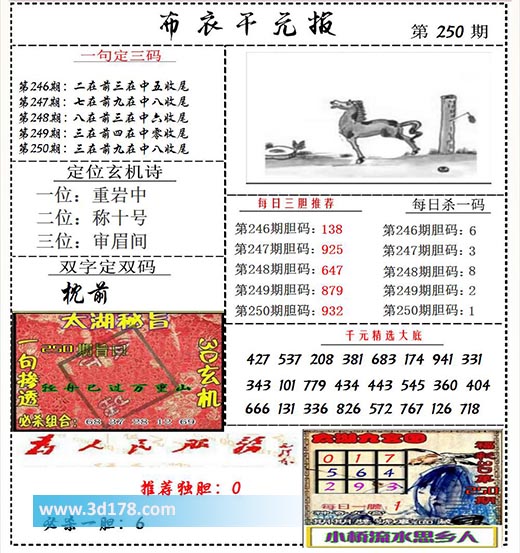 福彩3d布衣图库布衣千元报第2021250期定位玄机诗: