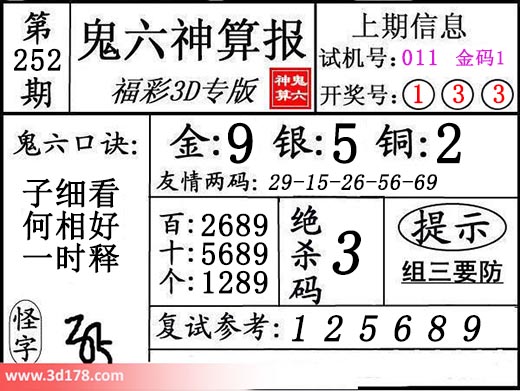 3d第21252期鬼六神算报为您推荐鬼六口诀: