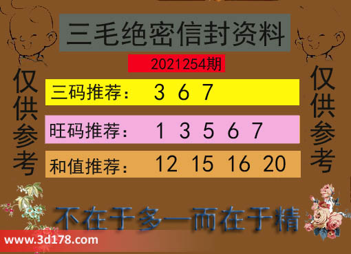 福彩3d第21254期三毛绝密信封资料图详解: