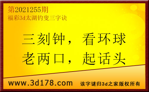 3d第21255期太湖字谜:三刻钟,看环球,老两口,起话头