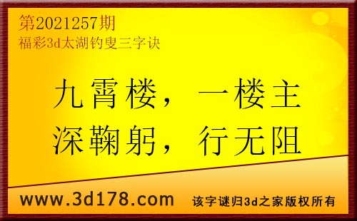 3d第21257期太湖字谜:九霄楼,一楼主,深鞠躬,行无阻