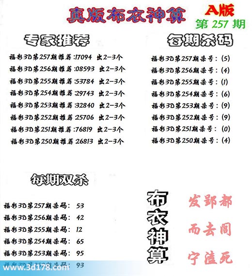 3d布衣神算第257期定位杀码: