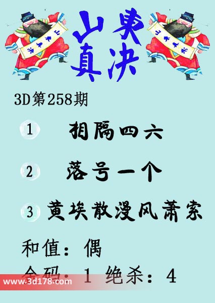 福彩3d第2021258期山东真诀图如下所示: