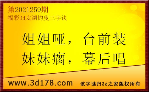 3d第21259期太湖字谜:姐姐哑,台前装,妹妹瘸,幕后唱