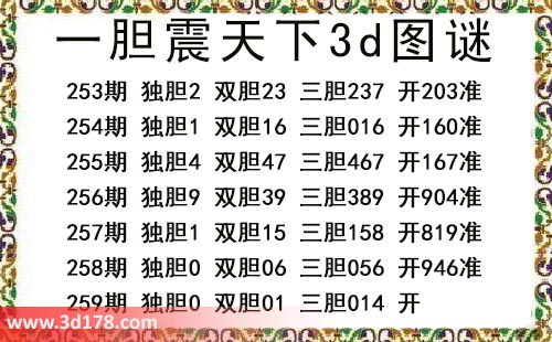 一胆震天下三胆图库由3d之家3d图库频道原创,仅供彩民参考,温馨提供。