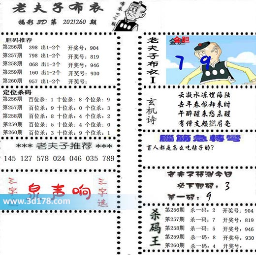 福彩3d第2021260期老夫子布衣图详情: