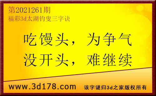 3d第21261期太湖字谜:吃馒头,为争气,没开头,难继续