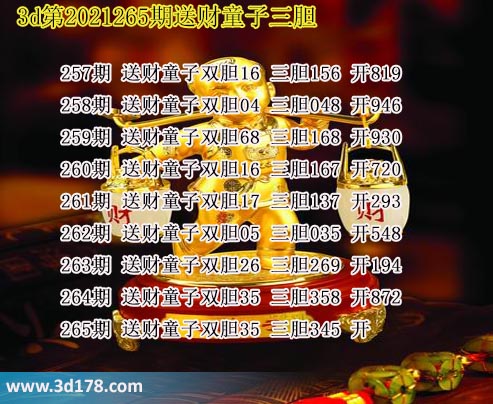 下面我们一起来回顾一下3d之家胆码图送财童子三胆近期推荐详情: