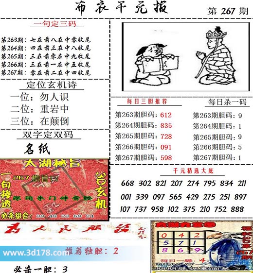 福彩3d第2021267期布衣千元报图详情分析如下: