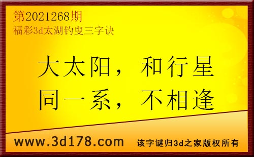 3d第21268期太湖字谜:大太阳,和行星,同一系,不相逢