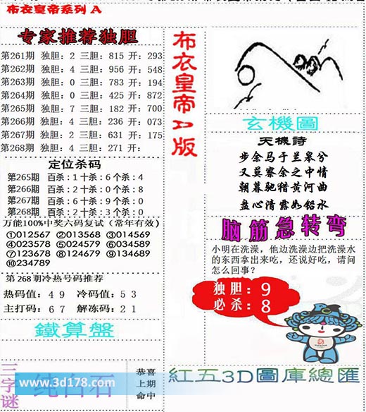 福彩3d第2021268期布衣皇帝A版布衣专家独家推荐: