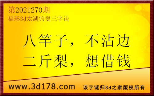 3d第21270期太湖字谜:八竿子,不沾边,二斤梨,想借钱