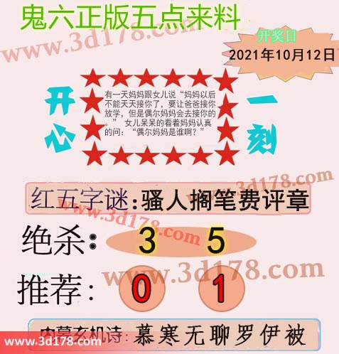 福彩3d第2021271期鬼六五点来料: