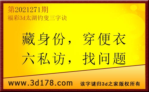 3d第21271期太湖字谜:藏身份,穿便衣,六私访,找问题