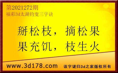 3d第21272期太湖字谜:掰松枝,摘松果,果充饥,枝生火