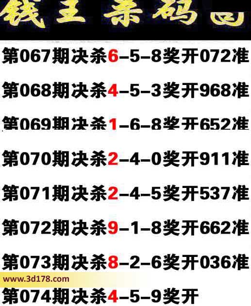 3d第2014074期钱王杀码图: