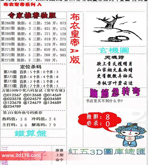 福彩3d第2021273期布衣皇帝A版布衣专家独家推荐: