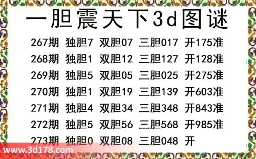 一胆震天下三胆图库由3d之家3d图库频道原创,仅供彩民参考,温馨提供。