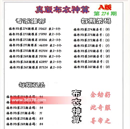 3d之家布衣图库之布衣神算图第2021274期详解: