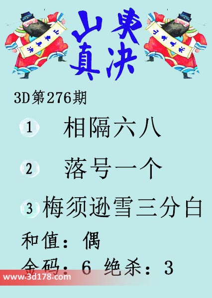 福彩3d第2021276期山东真诀图如下所示: