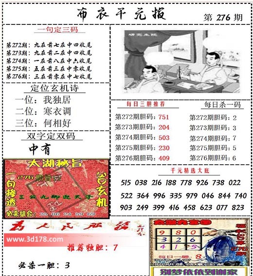 福彩3d布衣图库布衣千元报第2021276期定位玄机诗: