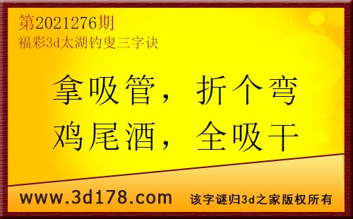 3d第2021276期太湖字谜:拿吸管,折个弯,鸡尾酒,全吸干